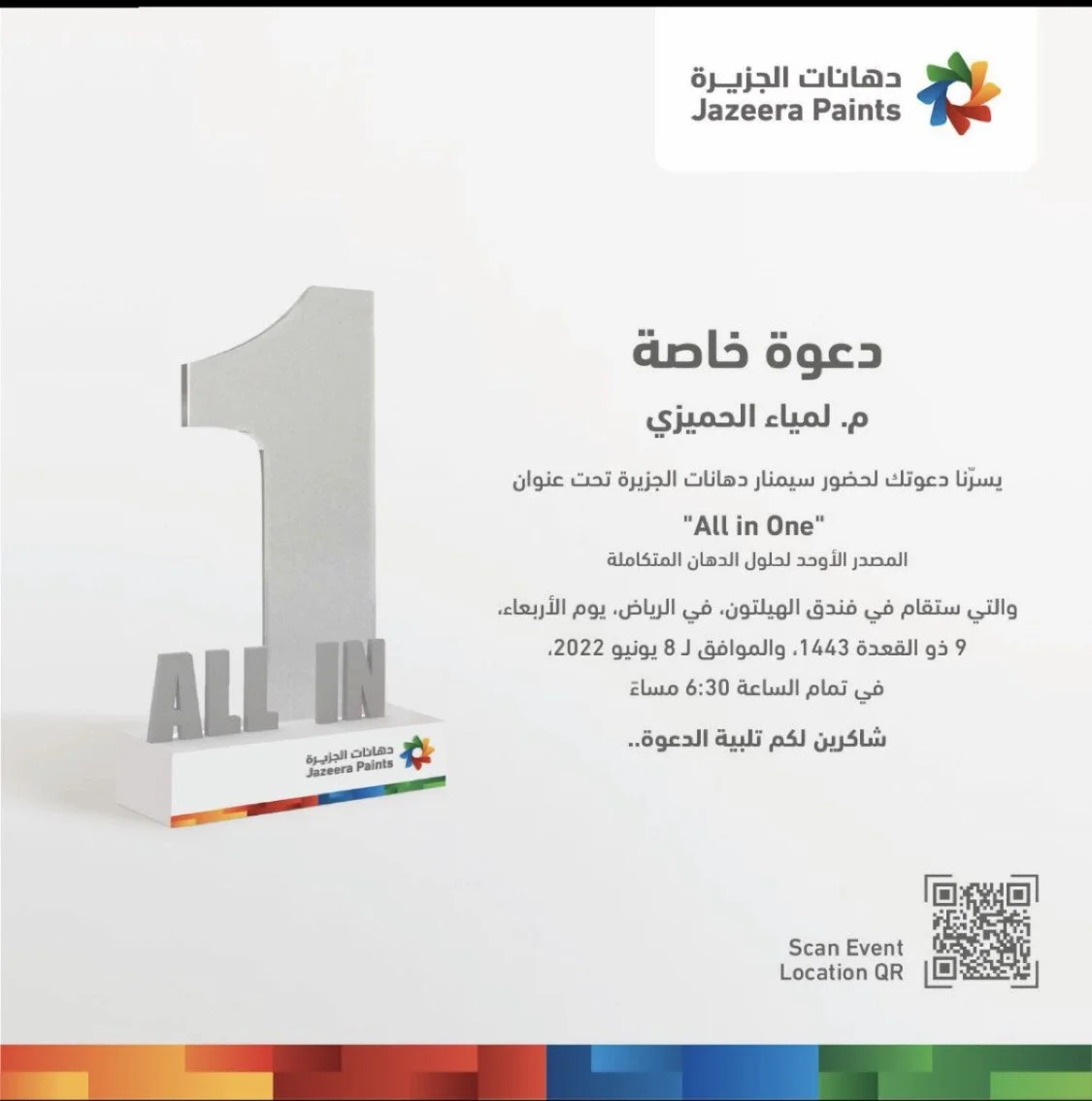 دعوة خاصة وحضور سيمنار دهانات الجزيرة All in One