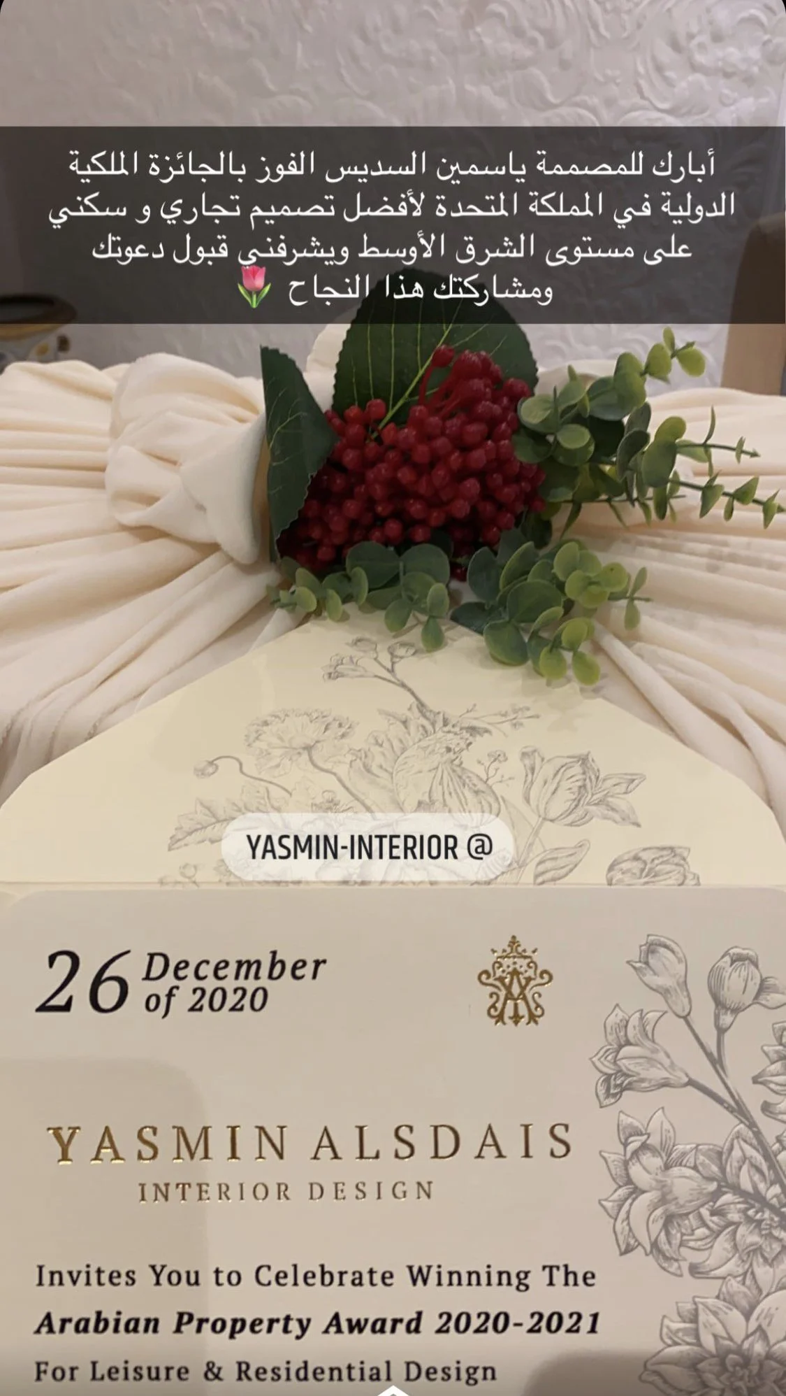 تلقت السيدة لمياء الحميزي الرئيس التنفيذي لـ il merákey دعوة لحضور حفل تكريم ياسمين السديس للفوز بالجائزة الملكية الدولية للأمم المتحدة 2020-2021 لأفضل تصميم تجاري و سكني على مستوى الشرق الأوسط. وقامت السيدة لمياء الحميزي بتلبية الدعوة وحضور حفل التكريم والذي بدوره عزز العلاقات بين المصممين وشركات ومكاتب التصميم الداخلي في الرياض والسعودية والشرق الأوسط والاطلاع المستجدات في محال التصميم الداخلي.